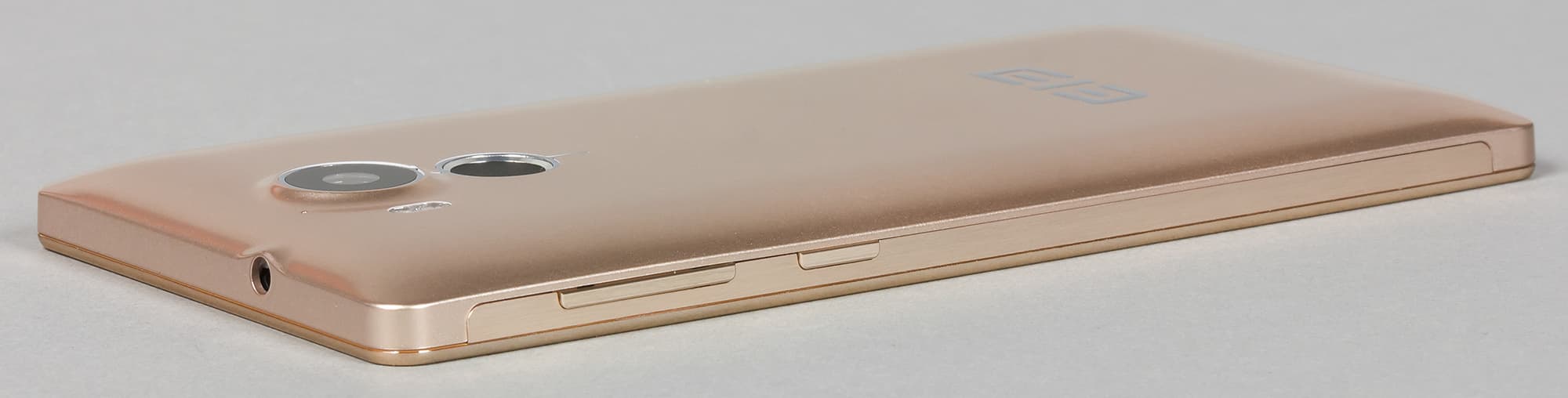 Большая часть корпуса Elephone Vowney, по всей видимости, выполнена из пластика, окрашенного под металл. И лишь продольные небольшие вставки на боковинах сделаны из настоящего металла. Как бы то ни было, аппарат получился весьма тяжелым, связано это с материалами изготовления, или нет. В любом случае непривычную толщину это никак не оправдывает: смартфон вполне мог бы быть тоньше, возможно, тогда он не выглядел бы и не ощущался таким грузным.