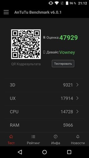 | AnTuTu (больше — лучше) | 47929 (v6.x) | 37008 (v6.x) | 47323 (v5.x) | 80889 (v6.x) | 85756 (v6.x) |