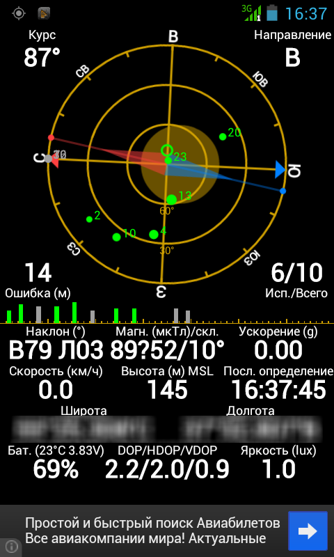 - Датчик положения в пространстве, акселерометр, магнитометр;