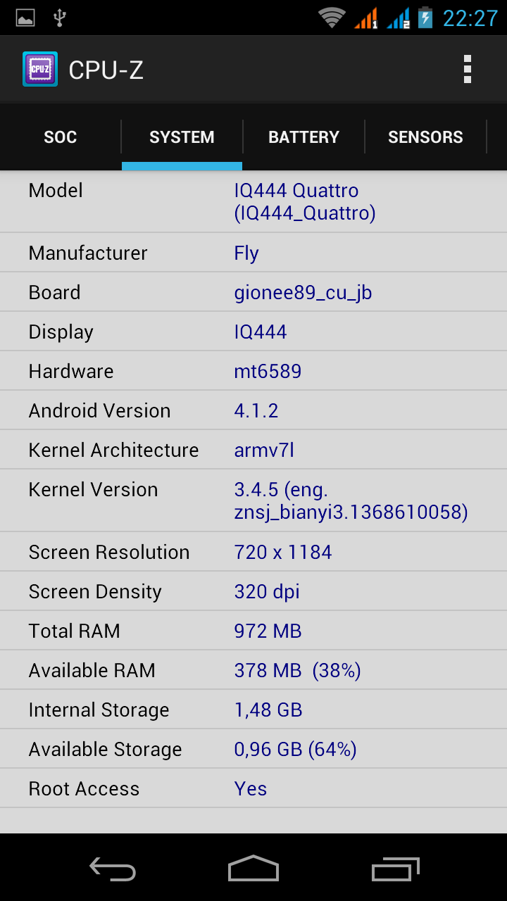 В смартфоне Fly IQ444 Diamond 2 установлена не самая свежая версия операционной системы — Android 4.1.2, но серьезным недостатком это не является. На момент написания данного обзора какие-либо обновления прошивок отсутствовали как на официальном сайте, так и на форумах владельцев смартфона, непонятно появятся ли они вообще в будущем. Сторонних прошивок также немного, доступны инструкции по получению root-прав и установке сторонних загрузчиков.