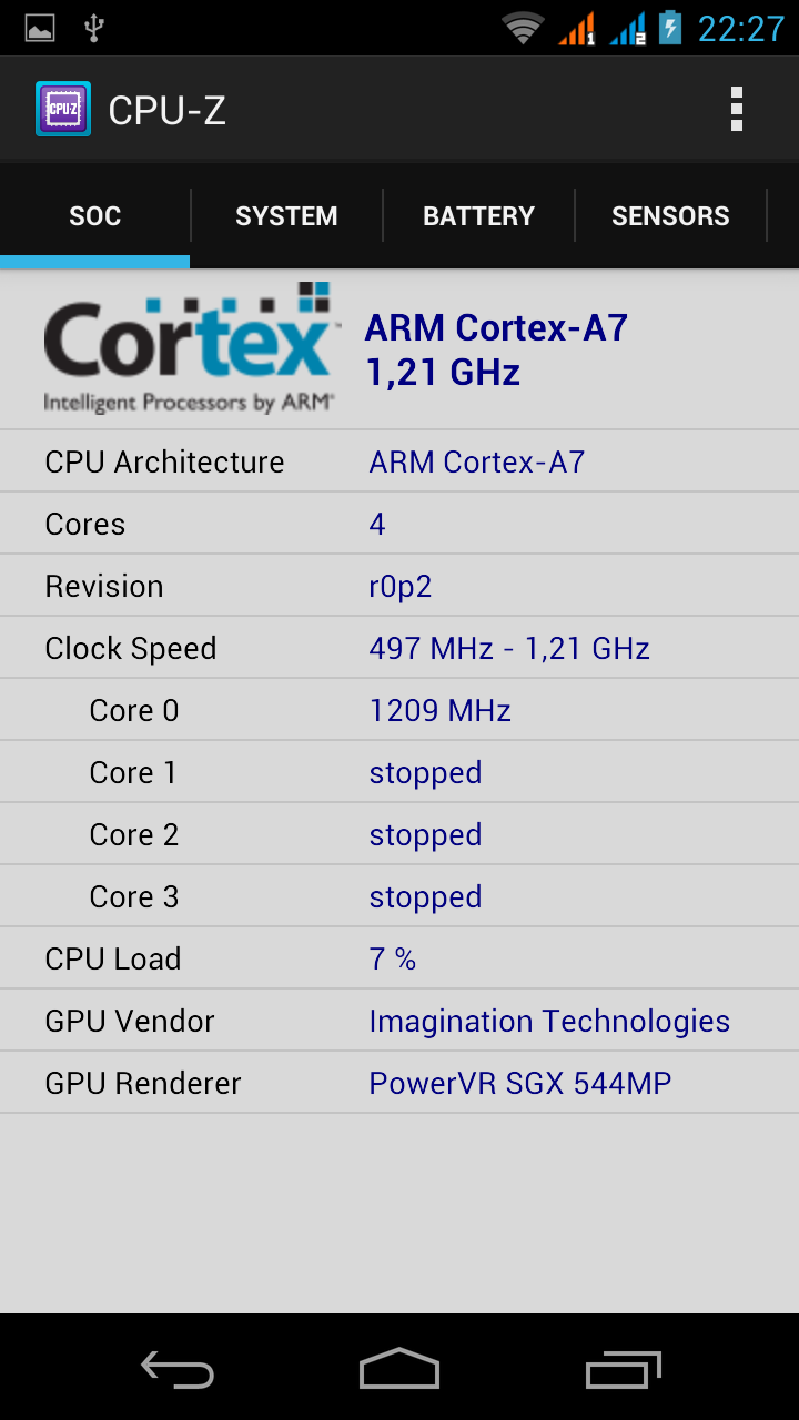 - Платформа MediaTek MT6589: четыре ядра ARM Cortex-A7 (частота 1,2 ГГц) с видеоядром PowerVR SGX 544MP;