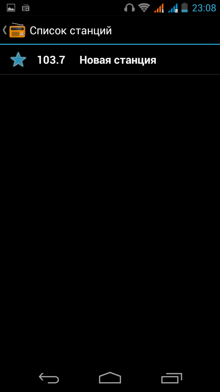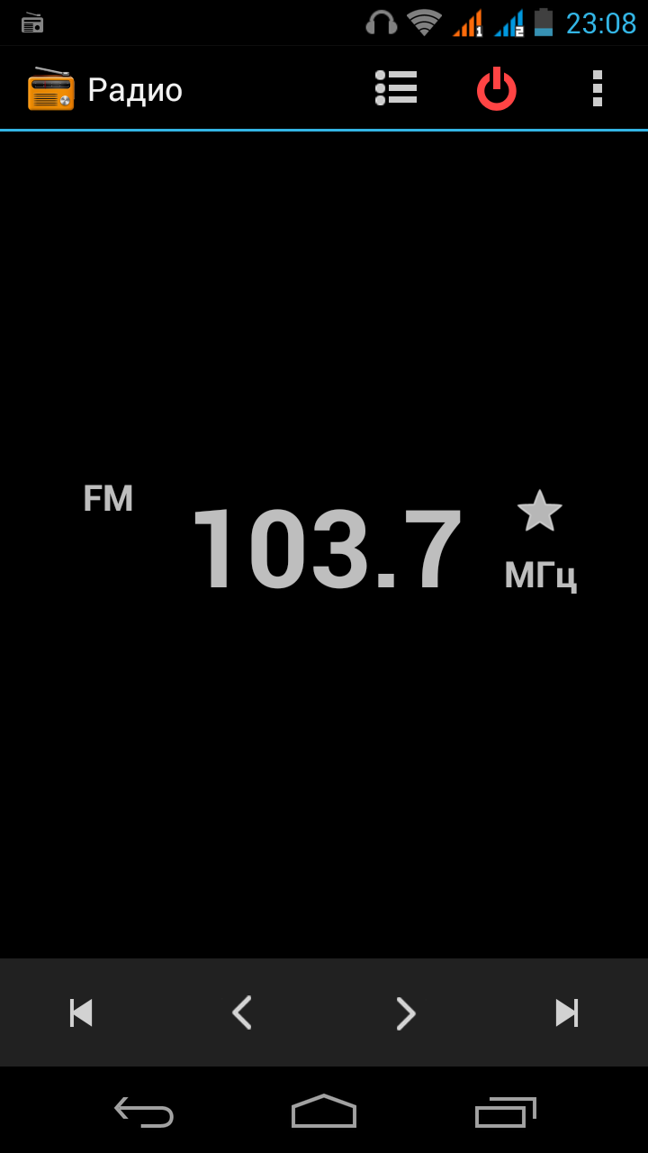 Предложение программы управления FM-радиоприемником включить его без подключенных к смартфону наушников оказалось ошибкой разработчиков. Без гарнитуры или наушников FM-приемник Fly IQ444 Diamond 2 все-таки неработоспособен. В отличие от проигрывателя музыки, внешний вид программы управления FM-приемником героя обзора не претерпел изменений. Сигнал радиостанции можно сохранить в виде файла, программа сама умеет находить станции и выводить звук на динамик, поддержка RDS отсутствует, качество приема хорошее.
