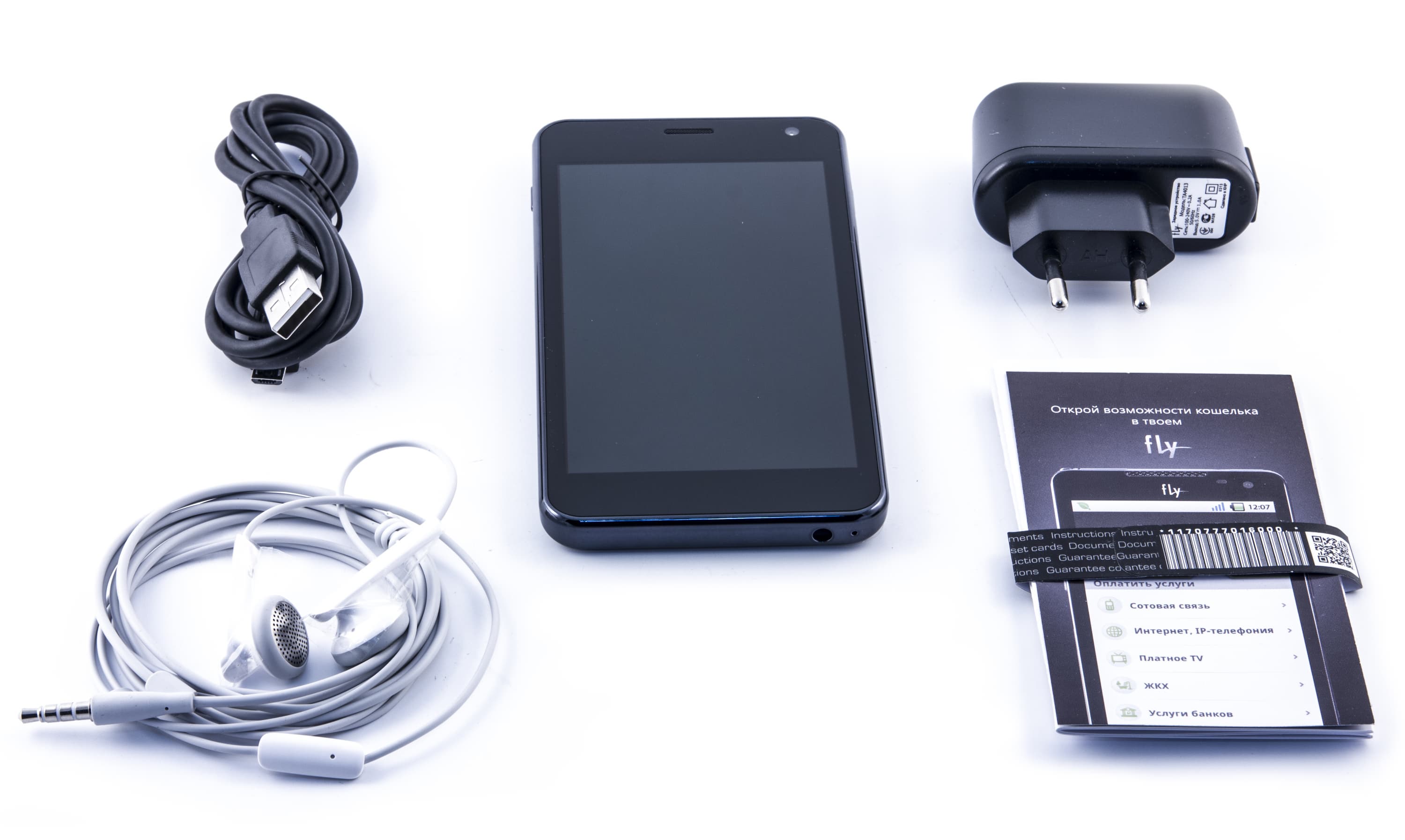 Внутри все стандартно: смартфон, аккумулятор, зарядное устройство, кабель Micro-USB—USB, проводная стереогарнитура и документация. Нужно отметить, что Fly всегда основательно подходит не только к дизайну упаковки, но и к инструкциям к своим устройствам. Все они представлены в виде качественных цветных буклетов-раскладушек: один с описанием базовых функций устройства, второй с рассказом о дополнительных возможностях. В целом же, комплектация у Fly IQ444 Diamond 2 стандартная, по принципу «ничего лишнего», ничего другого от бюджетного смартфона не ожидалось.