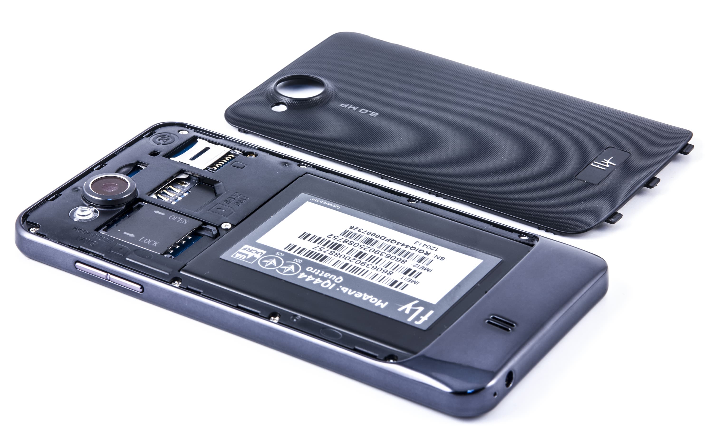 Под крышкой расположены разъемы для двух SIM-карт и карты microSD, установить их можно без отсоединения аккумулятора, который, что удивительно, не отсоединяется вовсе. Разработчики Fly IQ444 Diamond 2 что-то намудрили и исключили возможность замены батареи при всем при том, что невооруженным глазом видно, что она абсолютно самостоятельная деталь в отдельном корпусе. Она вставлена в разъем и, судя по всему, приклеена к смартфону. Более странного решения я еще не встречал.