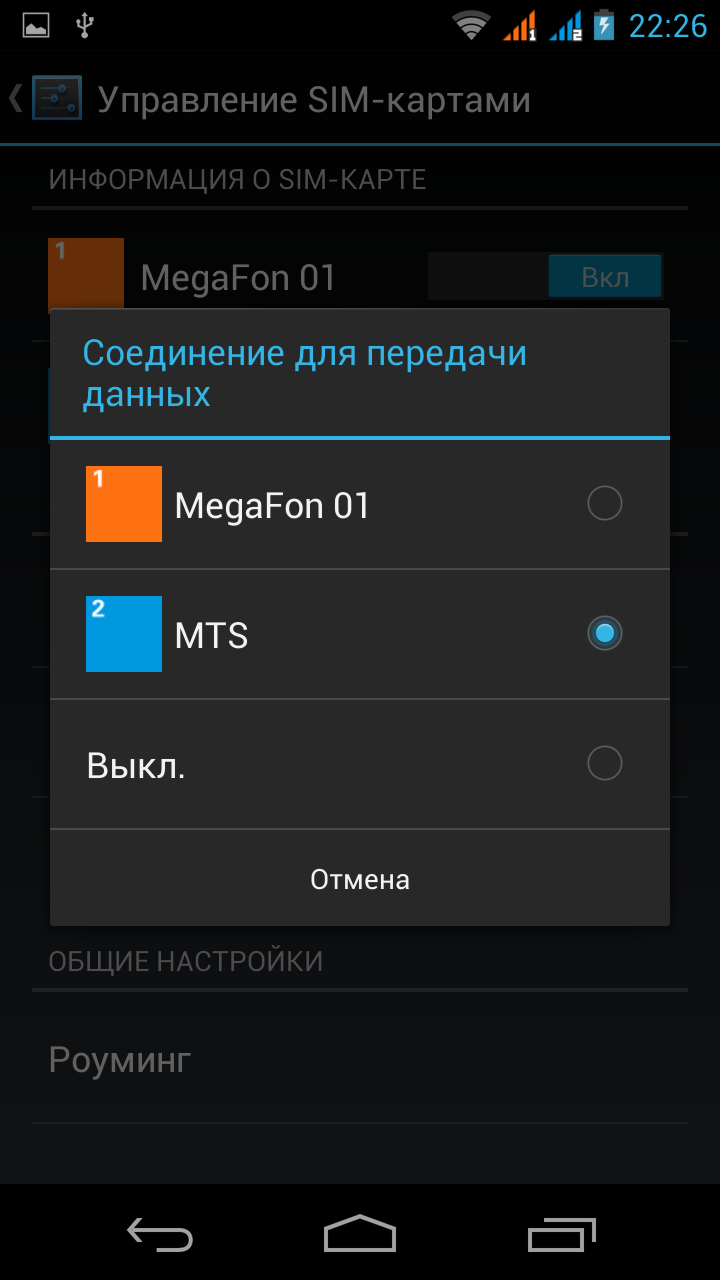 Возможности модуля сотовой связи в Fly IQ444 Diamond 2 стандартны для двухсимочного смартфона с MTK6589: два канала связи, одновременная работа в режиме ожидания, работа только одного канала в режиме звонка или передачи данных. Только главная SIM-карта может работать в режиме 3G, судя по всему, это ограничение прошивки героя обзора. Многие устройства с MTK6589 уже поддерживают работу в сотовых сетях третьего поколения по любому из каналов связи. Метод управления обеими SIM-картами уже привычен: можно указать главную «симку» и выполнять все действия, например звонить или выходить в сеть, через нее, можно настроить систему чтобы она каждый раз спрашивала какую из двух SIM-карт использовать. Fly IQ444 Diamond 2 успешно поймал сигнал 2G и 3G сетей как в Москве, так и в области. Скорость соединения с сетью оказалась не очень высокой, но достаточной для вполне комфортной работы в режиме онлайн.