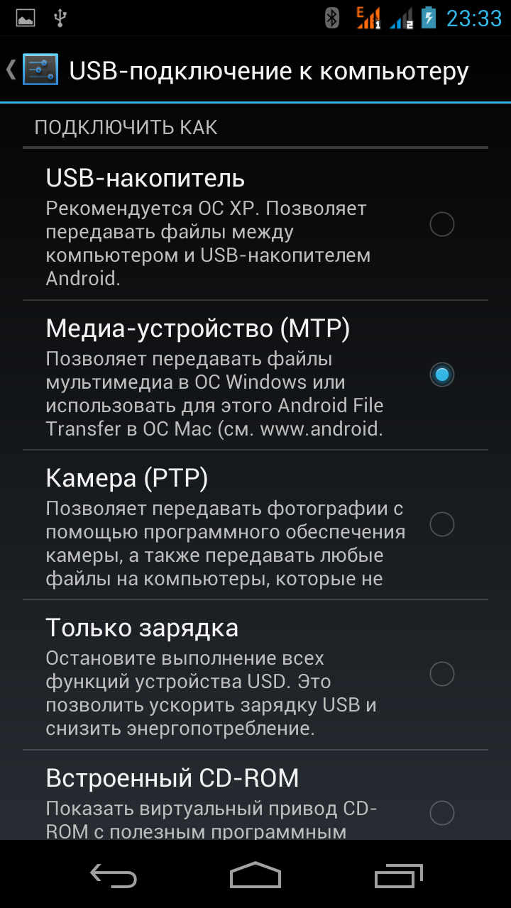 Завершить описание этого раздела можно перечислением возможностей проводного подключения Fly IQ444 Diamond 2: USB-модем, USB-накопитель, медиасервер MTP, фотокамера PTP. Работа в качестве USB-хоста, к сожалению, не поддерживается.