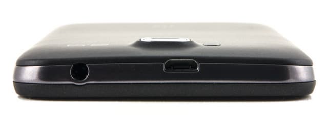 Производитель уже не первый раз использует верхний торец для установки разъема microUSB. Этот вариант удобен если вы используете/заряжаете аппарат на столе. А вот к выбору автомобильного крепления в этом случае придется подойти внимательнее. Впрочем, это относится к любому аппарату, поскольку стандарта на место установки разъема не существует. Здесь же находится и стандартный 3,5 мм джек для проводной гантитуры.