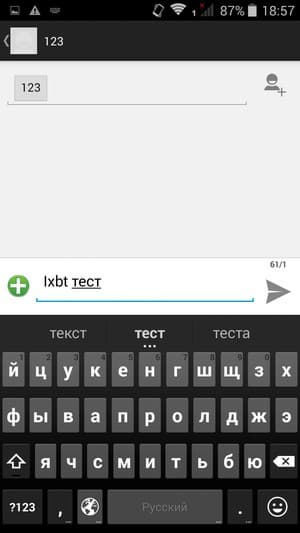 Самопроизвольных перезагрузок/выключений за время тестирования не наблюдалось, с этим проблем нет, интерфейс работает очень быстро, задержек и заторможенности не замечено. Раскладка и расположение клавиш стандартные: переключение языков осуществляется нажатием на специальную кнопку с изображением глобуса, отдельного выделенного ряда с цифрами нет — необходимо каждый раз переключать раскладку. Телефонное приложение поддерживает Smart Dial, то есть во время набора телефонного номера сразу осуществляется и поиск по контактам, поддерживается и популярный у многих пользователей метод безотрывного способа ввода типа Swype.
