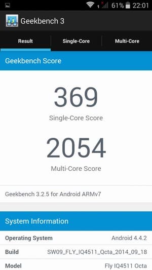 Результаты тестирования ожидаемо показали, что производительность у смартфона находится приблизительно на среднем уровне (примерно 27К в AnTuTu v 5.x). Также вполне ожидаемо, что урезанная модификация платформы закономерно оказалась немного медленнее, чем полноценная версия MT6592 с частотой процессорных ядер 1,7 ГГц (примерно 30К в AnTuTu на примере Fly Tornado Slim и Micromax Canvas Nitro). Добавить здесь особенно нечего, восьмиядерная SoC MediaTek MT6592 уже давно и прочно обосновалась на рынке, она хорошо уже нами изучена на примере множества аппаратов, протестированных за прошедший год. Рекордов по производительности она никогда не била и уже не побьет, но и смартфоны на ее основе не слишком дороги. На смену ей постепенно будет приходить новая MT6595, некоторые из таких устройств мы уже исследовали. Новая платформа превосходит свою предшественницу столь значительно, что сравнивать их просто бессмысленно. Удел SoC MediaTek MT6592 — средний и дальше по нисходящей уровни, но никак не топовый и не флагманский. Тем не менее, описываемый сегодня смартфон достаточно мощный, производительности восьмиядерной платформы еще долго будет хватать для выполнения большинства задач, в том числе и для требовательных игр.