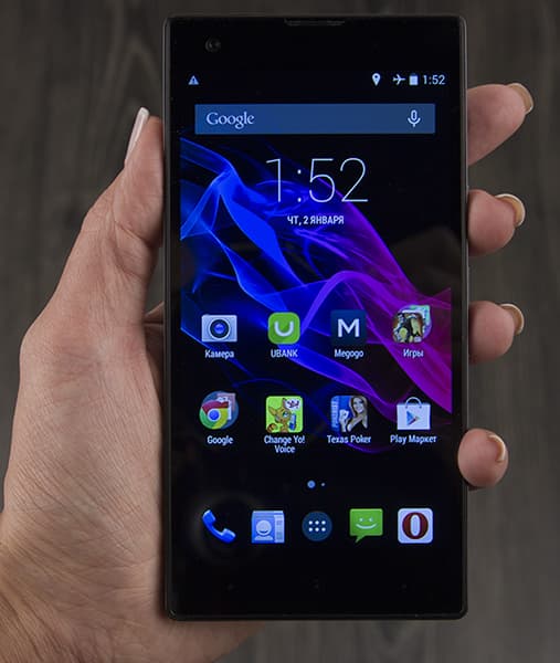 Смартфон функционирует в современных сетях 2G GSM и 3G WCDMA, поддержки LTE (4G) в аппарате нет. Стандартно можно организовать беспроводную точку доступа через каналы Wi-Fi или Bluetooth, есть режимы Wi-Fi Direct и Wi-Fi Display. Примечательно, что модуль Wi-Fi 802.11a/b/g/n здесь поддерживает работу с двумя диапазонами (2,4 и 5 ГГц), хотя на фирменном сайте указана поддержка лишь одного диапазона (2,4 ГГц). А вот NFC действительно не поддерживается, и флэш-накопитель с помощью переходника OTG подключить нельзя. Аппарат работает с GPS/A-GPS, без поддержки отечественной Глонасс. На этом месте стоит заметить, что не реализован здесь и датчик магнитного поля, на основе которого обычно функционирует электронный компас навигационных картографических программ. То есть, при ориентировании на местности нельзя определить на карте направление вашего взгляда, что весьма неудобно.