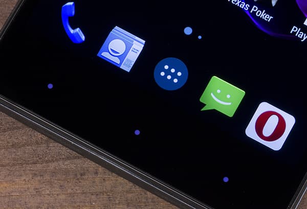 Ниже, под экраном, располагается не совсем привычный ряд из трех аппаратных кнопок управления системой и приложениями. Хотя все эти кнопки сенсорные, на них не нанесены отличительные пиктограммы — только три одинаковых светящихся круглых точки обозначают места расположения данных элементов на корпусе. Назначение же каждой из кнопок придется запоминать по памяти. Кнопки имеют достаточно яркую подсветку белого цвета, повлиять как-либо на длительность и интенсивность работы подсветки с помощью настроек нельзя.