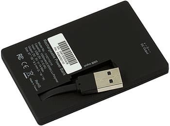 Внешне устройство достаточно сильно отличается от своих собратьев: корпус из обычной пластмассы, размерами 81 х 43 х 11 мм, явно подвергся облагораживающему воздействию дизайнеров :) К сожалению, на корпусе нашелся всего один светодиодный индикатор, т.е. определить, сколько там внутри осталось электричества, теперь невозможно. Первый недостаток. Второй — теперь придется использовать кабель и для зарядки встроенного аккумулятора, поскольку единственным разъемом на корпусе является USB mini-B. Впрочем, из этого не следует, что в дорогу с собой нужно брать больше вещей: такой разъем применяется все более и более активно, так что подходящий кабель наверняка уже входит в «дорожный комплект» любого путешественника. Логика подключения внешних устройств осталась той же, что и в предыдущем случае: один кабель в комплекте позволяет применять в качестве розетки обычный «большой» разъем USB, второй используется все для тех же четырех сменных насадок. Единственное изменение — оба теперь к «силовой банке» подключаются не через круглый разъем, а через mini-B.