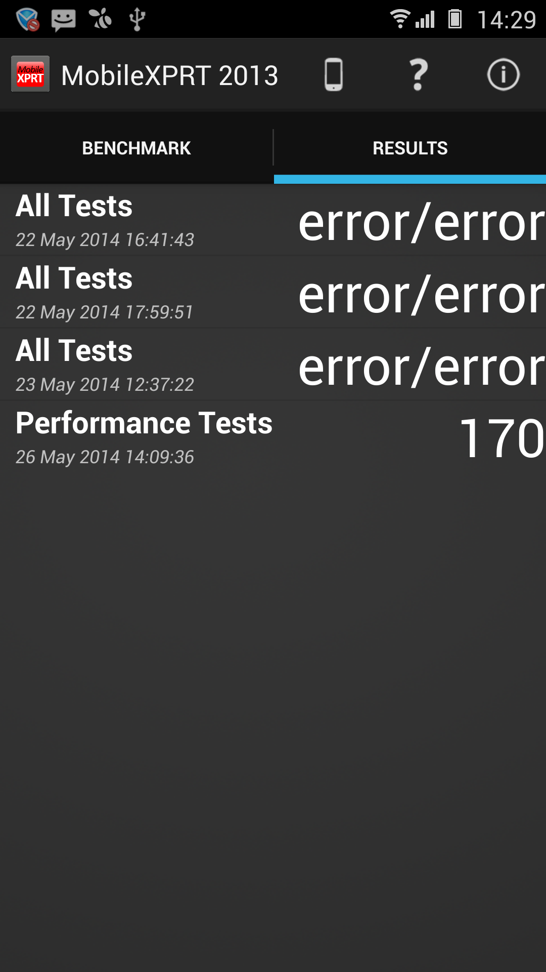 В тесте AnTuTu герой обзора занял полагающееся ему место, лишь немного уступив Lenovo Vibe Z с аналогичным процессором. В тесте MobileXPRT 2013 китайский флагман смог пройти только тесты производительности, в тестах на быстродействие интерфейса программа зависала — вероятно, по причине отсутствия в прошивке Gionee Elife E7 некоторых стандартных API Google.