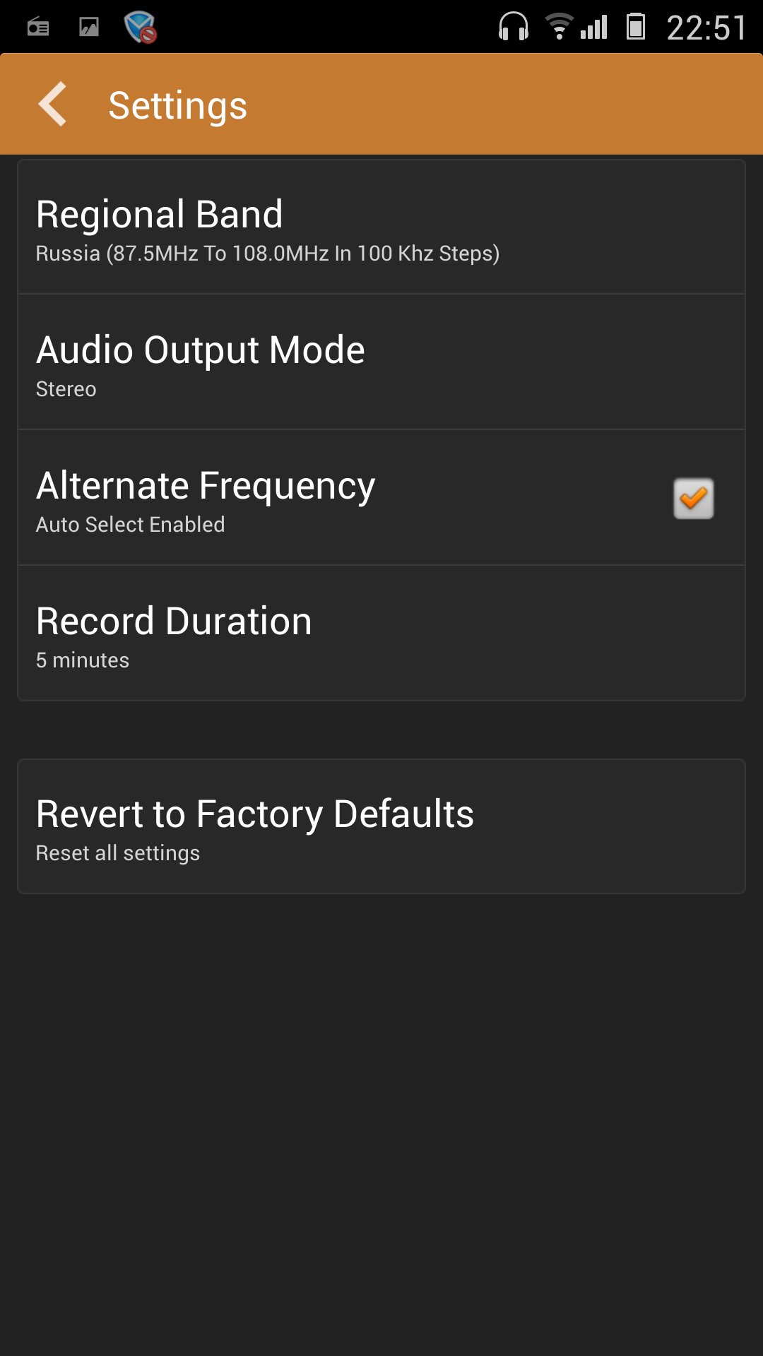 Встроенный в Gionee Elife E7 радиоприемник FM-диапазона работает только при подключенных наушниках, которые выполняют функцию радиоантенны. Качество приема сигнала хорошее. Программа управления FM-приемником позволяет настраивать частоту станции вручную либо проводить автоматический поиск по всему спектру. Есть также функция поиска станций по определенному жанру (видимо, данные считываются из сигнала RDS), но она ни разу ничего не нашла. Звук из FM-приемника можно выводить на наушники и динамик смартфона. Есть возможность записывать сигнал станций и сохранять его в аудиофайлы.