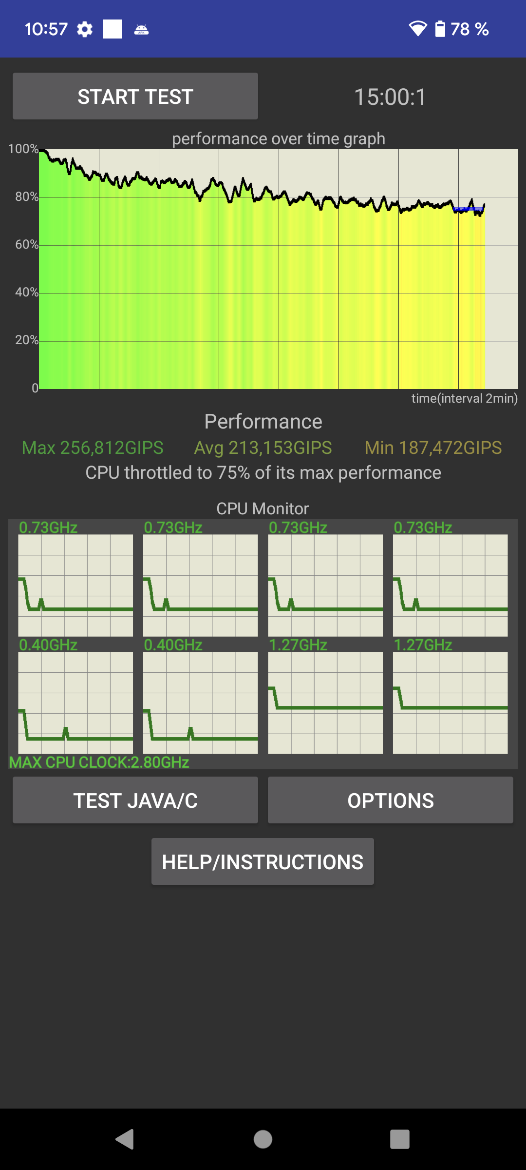 Тестирование традиционно проводилось на обычном уровне энергопотребления без использования функций энергосбережения, хотя таковые в аппарате имеются. Условия тестирования: выставлен минимальный комфортный уровень яркости (примерно 100 кд/м²). Тесты: беспрерывное чтение в программе Moon+ Reader (со стандартной, светлой темой); беспрерывный просмотр видео в HD-качестве (720р) через домашнюю сеть Wi-Fi; игра Injustice 2 с автонастройками графики.