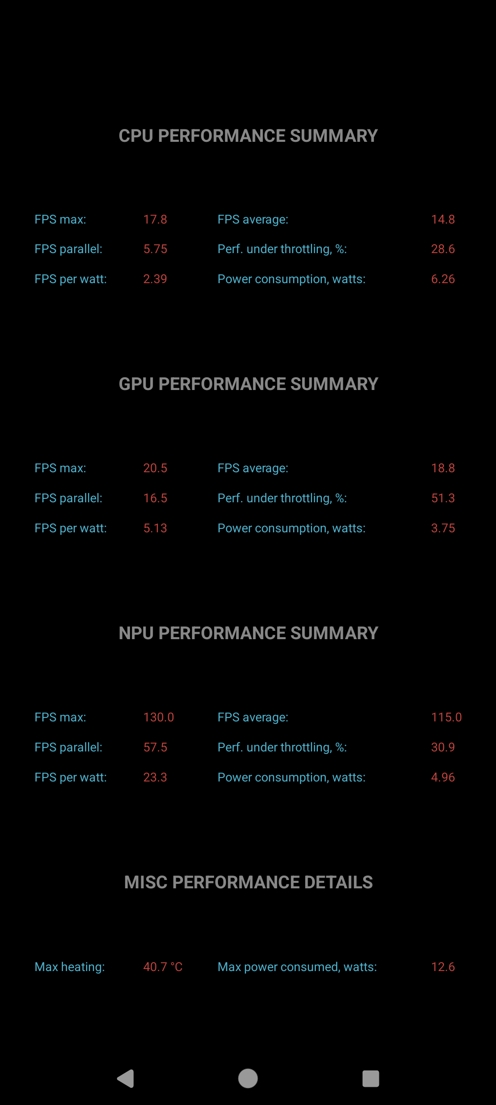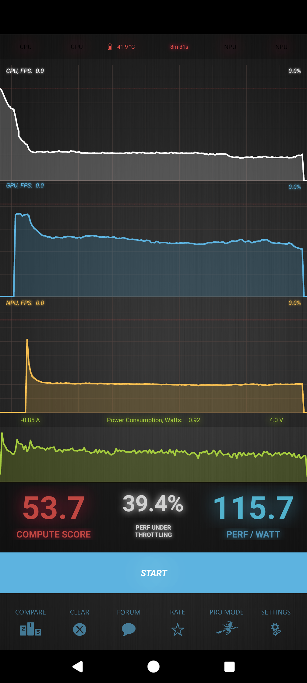 Тест на снижение производительности при нагреве мы проводим с помощью программы Burnout Benchmark, которая позволяет нагружать CPU, GPU и NPU: