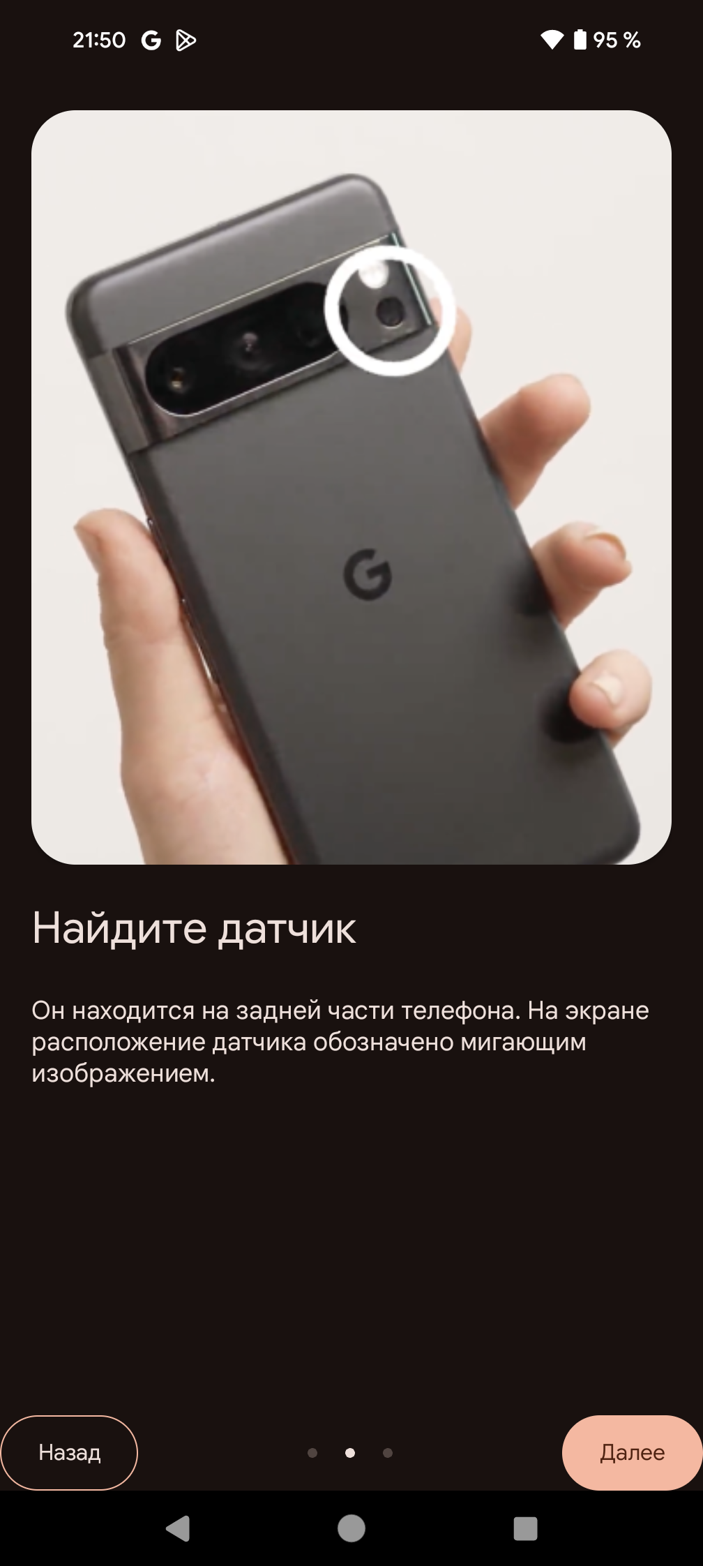 Сканер для аутентификации по отпечатку пальца расположен под стеклом экрана, но не так низко, как у большинства. Разработчики учли этот момент и приподняли его повыше, так что этот смартфон вполне можно разблокировать пальцем той руки, в которой вы его держите, без необходимости перехватывать и поддерживать аппарат второй рукой. Сканер срабатывает не очень быстро, приходится задерживать на нем палец, но зато ложных срабатываний почти не бывает.