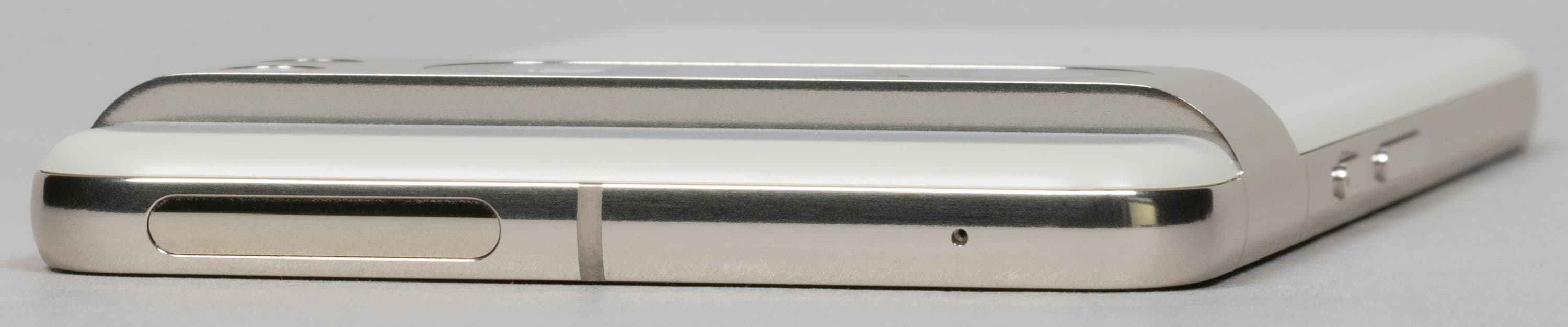 На торце сверху установлен только дополнительный микрофон. Овальная вставка — это модуль 5G.