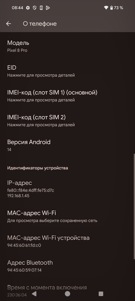 Подведем итоги. Экран имеет очень высокую максимальную яркость (до 1500 кд/м²) и обладает отличными антибликовыми свойствами, поэтому устройством без особых проблем можно пользоваться вне помещения даже летним солнечным днем. В полной темноте яркость можно понизить до комфортного значения (вплоть до 1,9 кд/м²). Допустимо использовать режим с автоматической подстройкой яркости, работающий адекватно. К достоинствам экрана также нужно отнести эффективное олеофобное покрытие, повышенное разрешение, поддержку цветового охвата sRGB и DCI-P3 (при участии ПО Google Photos), очень хороший цветовой баланс и динамическую подстройку частоты обновления до 120 Гц. Заодно напомним про общие достоинства OLED-экранов: истинный черный цвет (если в экране ничего не отражается), заметно меньшее, чем у ЖК, падение яркости изображения при взгляде под углом. К недостаткам можно отнести мерцание экрана, при желании обнаруживаемое визуально на низкой яркости. У пользователей, особо чувствительных к мерцанию, из-за этого может возникать повышенная утомляемость. Тем не менее, в целом качество экрана очень высокое.