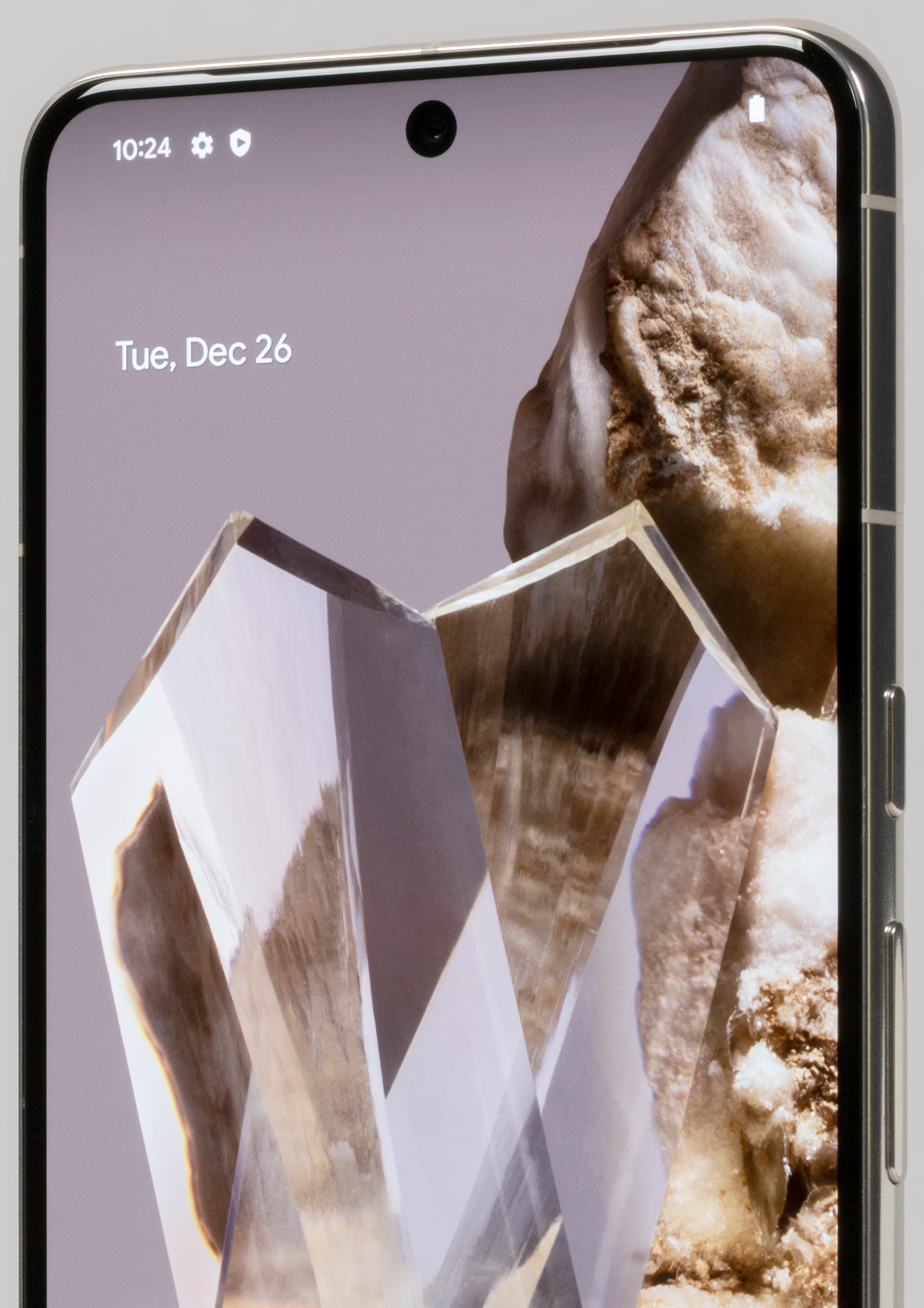 Смартфон Google Pixel 8 Pro оснащен дисплеем AMOLED с диагональю 6,7 дюйма и разрешением 1344×2992, прикрытым плоским защитным стеклом самого последнего поколения — Corning Gorilla Glass Victus 2. Плотность точек — 489 ppi. Ширина рамки вокруг экрана от кромки матрицы до края корпуса составляет примерно по 4 мм с каждой стороны. Поддерживается динамическая частота обновления экрана до 120 Гц, HDR10+ и мультитач по 10 касаниям.