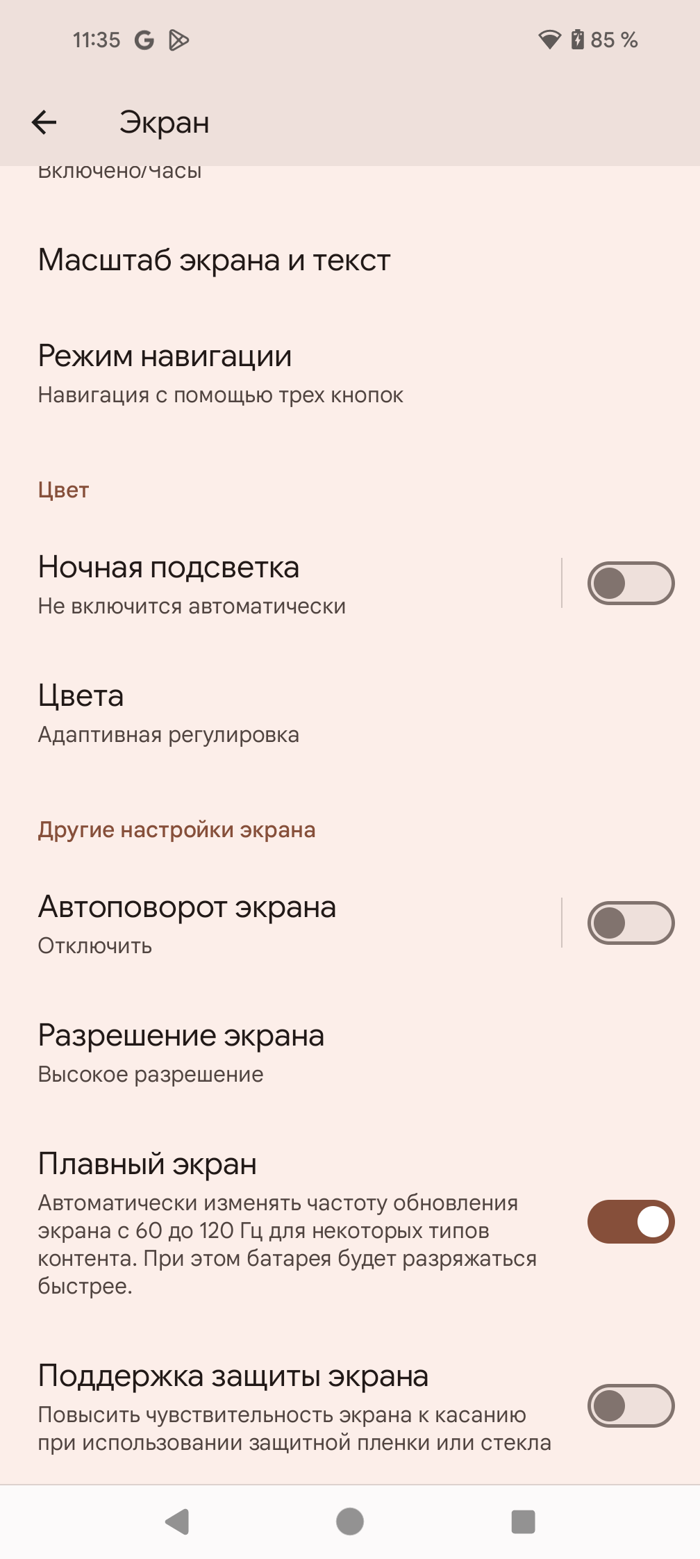 В настройках экрана можно включить режим с повышенной до 120 Гц частотой обновления: