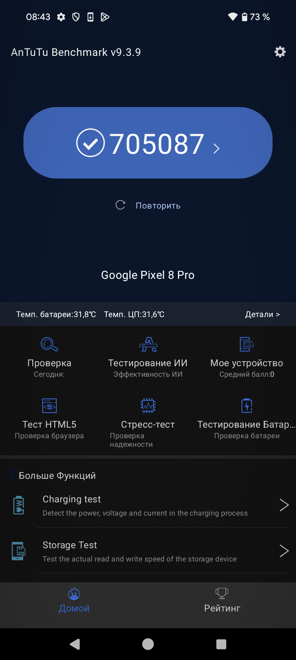 | AnTuTu (v9.x) (больше — лучше) | 705087 | 1180538 | 974851 | 1052648 | 605365 |
