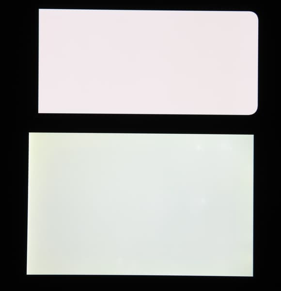 Цветопередача хорошая, цвета в меру насыщенные, цветовой баланс у экранов немного различается. Напомним, что фотография не может служить надежным источником сведений о качестве цветопередачи и приводится только для условной наглядной иллюстрации. В частности, выраженный красноватый оттенок белого и серого полей, присутствующий на фотографиях экрана смартфона, при перпендикулярном взгляде визуально отсутствует, что подтверждается аппаратными тестами с помощью спектрофотометра. Причина в том, что спектральная чувствительность матрицы фотоаппарата неточно совпадает с этой характеристикой человеческого зрения.