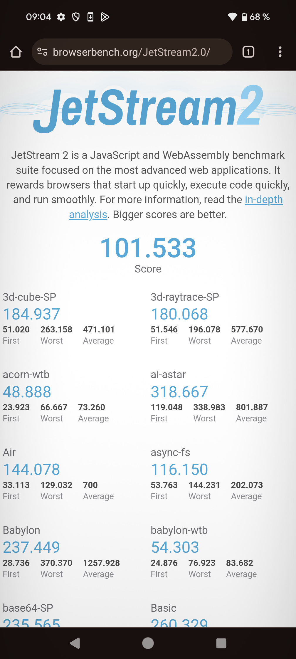 | JetStream (больше — лучше) | 102 | 170 | 143 | 98 | 52 |