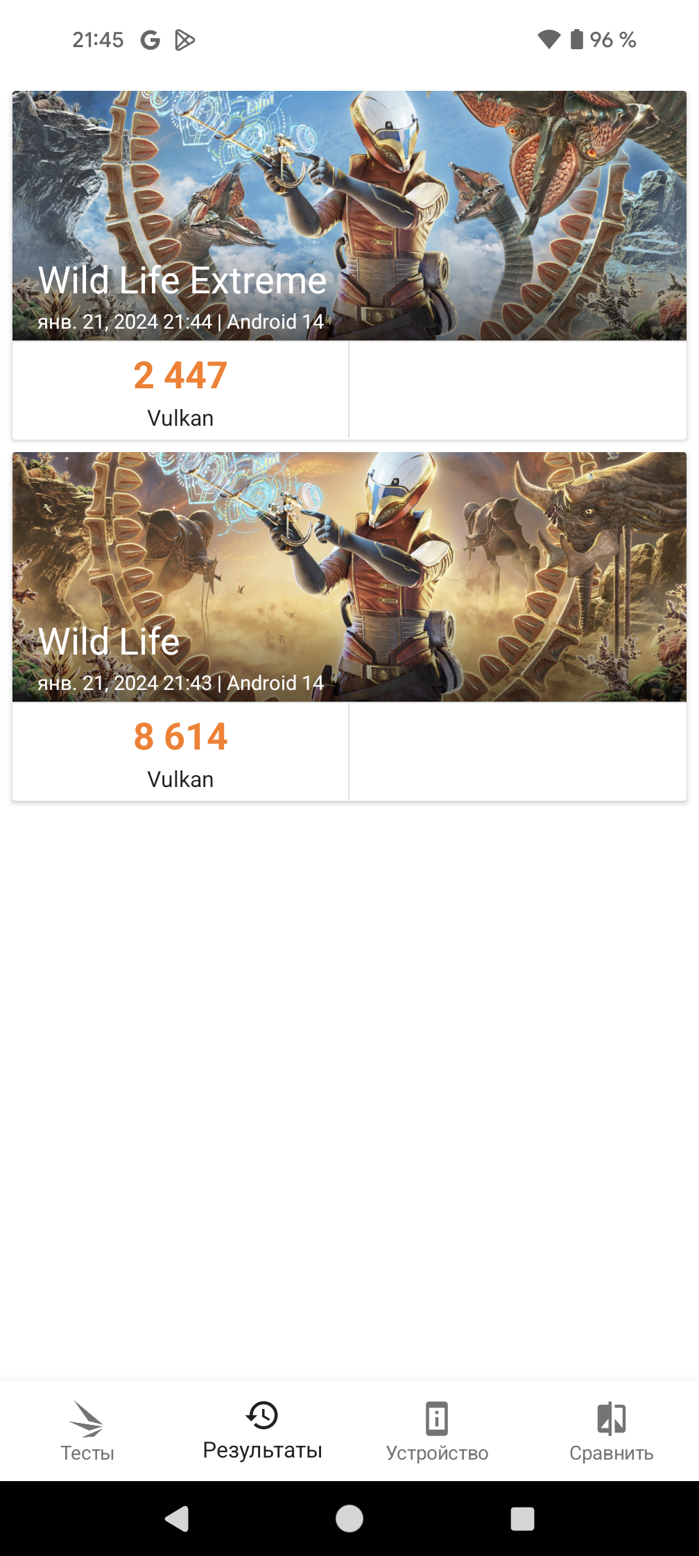 | 3DMark Wild Life Vulkan (больше — лучше) | 8614 | max | max | max | 3174 |