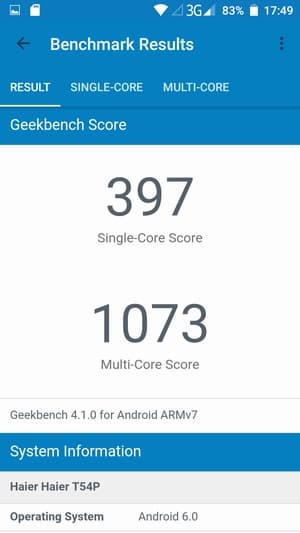 MediaTek MT6580 в Haier T54P — это дешевая платформа, старенькая, и маломощная, с отсталыми процессорными ядрами Cortex-A7, малым количеством оперативной памяти и таким же слабым видеоускорителем. Современные тесты 3DMark Ice Storm Sling Shot и GFX Benchmark смартфону просто недоступны вследствие того, что видеоускоритель не поддерживает OpenGL ES 3.1, запускаются лишь самые старые тесты, с OpenGL ES 2.0. Haier T54P пока еще справляется с основными задачами и даже позволяет поиграть в нетребовательные игры, но запаса для будущих обновлений у его аппаратной начинки нет.