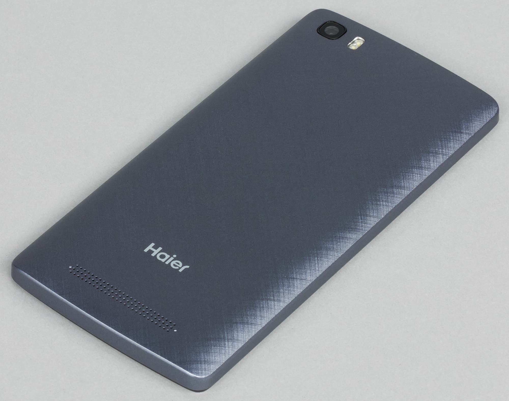 Haier T54P получил самый простой, не очень выразительный дизайн, но вместе с тем аппарат вполне симпатичный, спокойный и аккуратный. Сразу видно, что смартфон принадлежит к недорогому ценовому сегменту. Корпус полностью выполнен из твердого пластика с шероховатой текстурированностью задней поверхности. Крышка накрывает собой весь остов телефона вместе с боковинами, она крепко удерживается на корпусе, не люфтит и даже не поскрипывает, корпус монолитен.