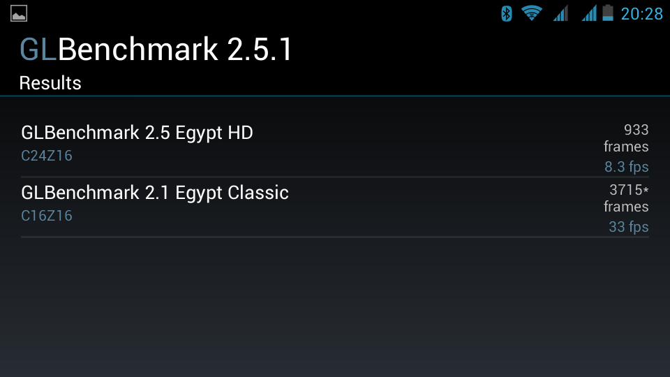 Что касается игровых приложений, то ждать высоких результатов от Adreno 203 не стоит. В тесте Epic Citadel в родном разрешении 960×540 точек скорость составляет около 20 fps. Сцена 2.1 Egypt Classic из GLBenchmark 2.5.1 может быть отображена на скорости порядка 30 fps. Данные цифры говорят о том, что с точки зрения производительности в 3D-играх рассматриваемый продукт интереса не представляет.