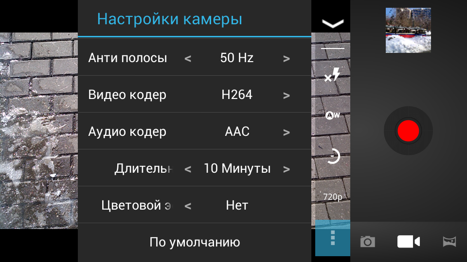 При записи видео (контейнер — 3GP, видеокодек — H.264 или MPEG4 ASP), тыловая камера поддерживает разрешение 720p, а фронтальная может обеспечить режим VGA. Правда, число кадров в секунду в разрешении 720p падает примерно в два раза с 30 в более простых вариантах. Есть опции постоянной подсветки и интервальной съемки.