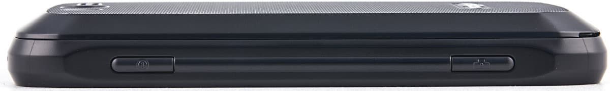 На верхнем торце размещен разъем для гарнитуры и второй микрофон, внизу — Micro-USB и основной микрофон. Боковые торцы почти во всю длину имеют закругленный выступ-ребро. Возможно, такой вид был задуман для более надежного удержания телефона в руке, но с точки зрения дизайна эти ребра немного выбиваются из стиля. В верхней части правого ребра находится кнопка включения питания, а внизу — выделенная кнопка фотокамеры. На левой стороне аналогичным образом оформлена кнопка регулировки громкости. Выбранное решение нам не очень понравилось — кнопки сложно найти на ощупь, а симметричная форма устройства путает еще больше.