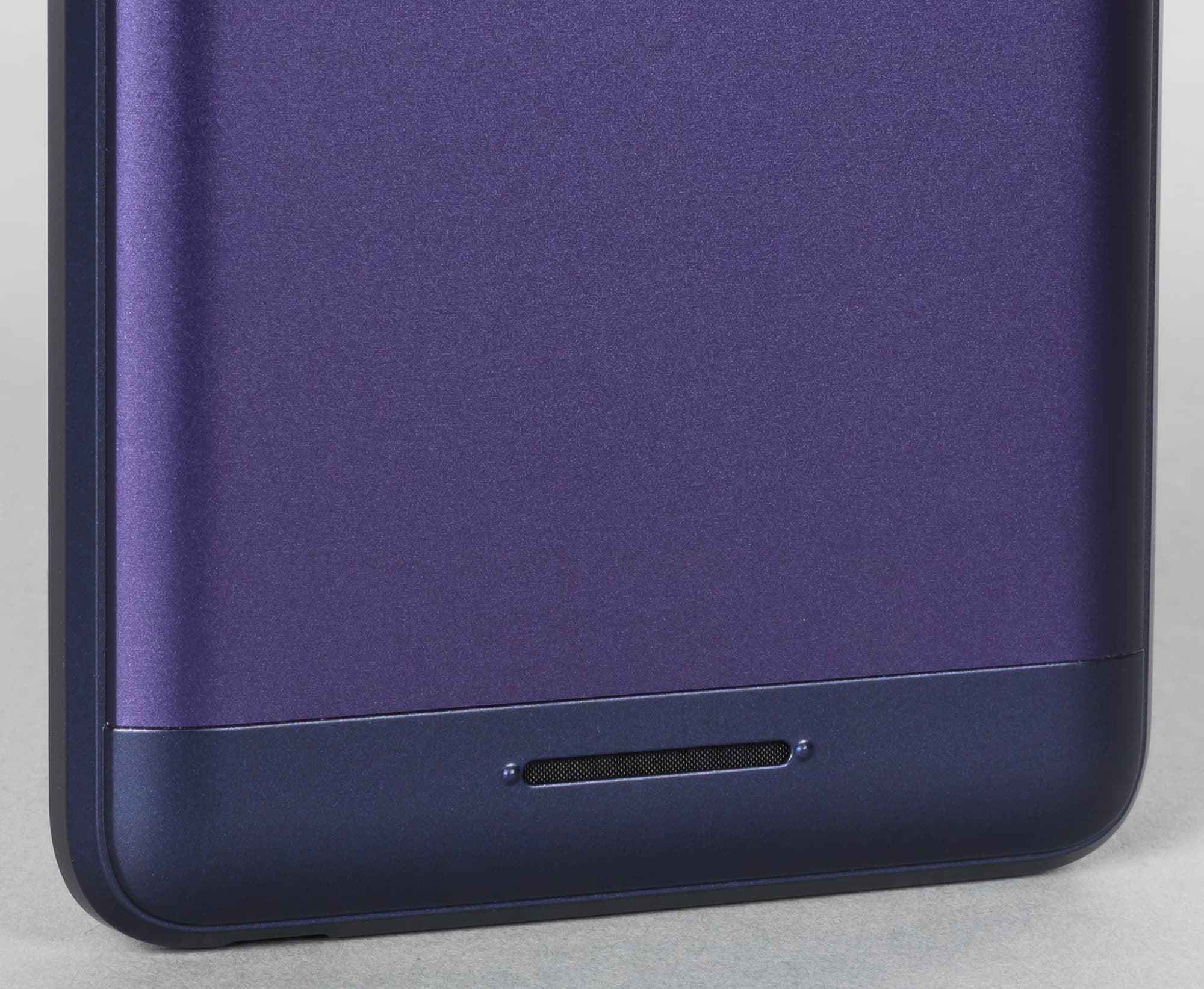 Основной динамик выведен сюда же, на заднюю крышку, так что звук заметно приглушается, когда смартфон лежит на столе. Кстати, звучит динамик смартфона для своего уровня на удивление громко и довольно чисто.