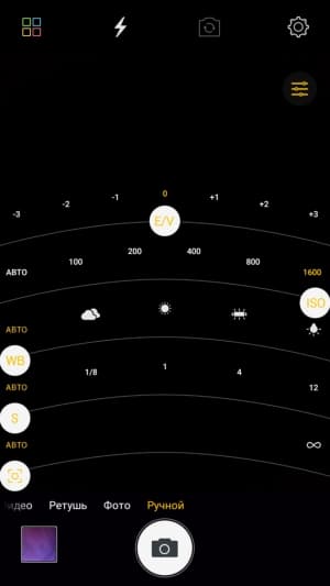 Основная камера оснащена 13-мегапиксельным модулем и объективом с диафрагмой f/2,2, с довольно быстрым автофокусом, без функции стабилизации для фотосъемки. Вспышка весьма яркая. Меню управления здесь не стандартное для платформы MediaTek, а свое собственное, и очень удобное своей наглядностью. Настройки оформлены в виде матрицы из квадратиков и одновременно отображаются на экране в виде полупрозрачной подложки на фоне видоискателя. Есть режим ручных настроек с несколькими концентрическими ползунками для выбора и настройки выдержки, светочувствительности (до ISO 1600), баланса белого. Есть дополнительные режимы: ночной, панорамный, HDR, есть даже возможность делать таймлапс, сканировать QR-коды и работать с текстом. Передавать управление настройками камеры сторонним приложениям с помощью Camera2 API нельзя, возможности записи снимков в RAW тоже нет.