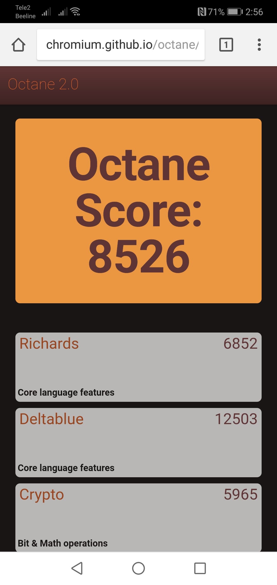 | Google Octane 2 (больше — лучше) | 8526 | 4874 | 4126 | 8450 |