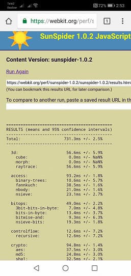 Что касается бенчмарков для оценки скорости движка javascript, то стоит всегда делать скидку на то, что в них результаты существенно зависят от браузера, в котором запускаются, так что сравнение может быть истинно корректным только на одинаковых ОС и браузерах, а такая возможность имеется при тестировании не всегда. В случае с ОС Android мы всегда стараемся использовать Google Chrome.