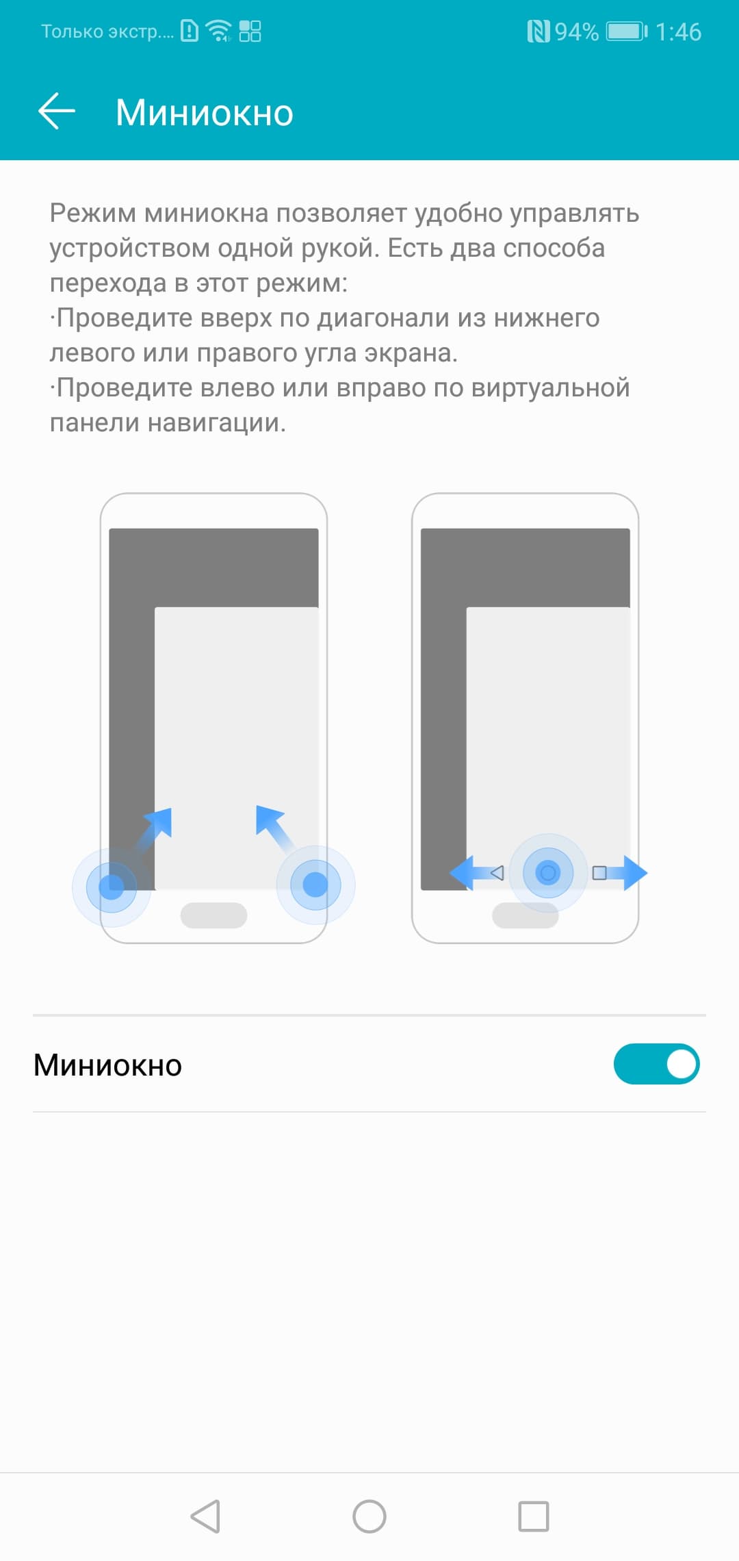При этом, вполне типично для китайских аппаратов, очень широко поддерживаются всевозможные жесты, есть виртуальная экранная многофункциональная кнопка и т. д. Сенсорная площадка под экраном, как и у P20, может работать своеобразным тачпадом, то есть управляться жестами. Но можно выключить ее и пользоваться виртуальной навигационной кнопкой-ползунком, как в iPhone X.