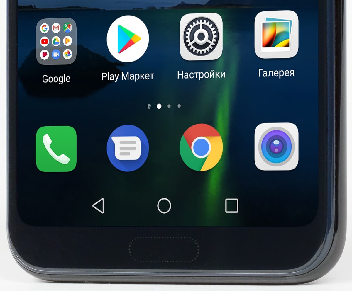 Площадка сканера отпечатков пальцев размещена на передней панели, она тактильно неразличима, лишь визуально обозначена пунктирной обводкой. Фактически, это тачпад, поддерживающий управление жестами. К самому сканеру претензий нет, он работает четко, без сбоев. Других кнопок под экраном нет.