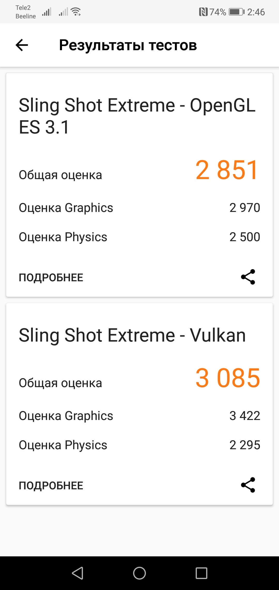 Судя по тестам, Kirin 970 не обгоняет, например, топовую Qualcomm Snapdragon 845, однако в реальных сценариях использования для этой SoC нет никаких преград. Она уверенно справляется с любыми поставленными перед ней задачами, в том числе и с самыми требовательными играми. Все проверенные нами игры, включая Injustice 2 и Mortal Kombat X, уверенно идут на максимальных настройках без малейших притормаживаний. Honor 10 — аппарат очень мощный, у него имеется значительный запас производительности для будущих обновлений.