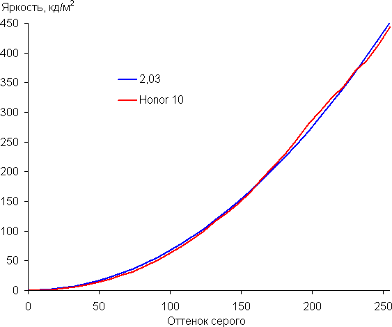 Контрастность (примерно в центре экрана) высокая — порядка 1500:1. Время отклика при переходе черный-белый-черный равно 19,5 мс (10,5 мс вкл. + 9,0 мс выкл.). Переход между полутонами серого 25% и 75% (по численному значению цвета) и обратно в сумме занимает 33 мс. Построенная по 32 точкам с равным интервалом по численному значению оттенка серого гамма-кривая не выявила завала ни в светах, ни в тенях. Показатель аппроксимирующей степенной функции равен 2,03, что ниже стандартного значения 2,2. При этом реальная гамма-кривая заметно отклоняется от степенной зависимости: