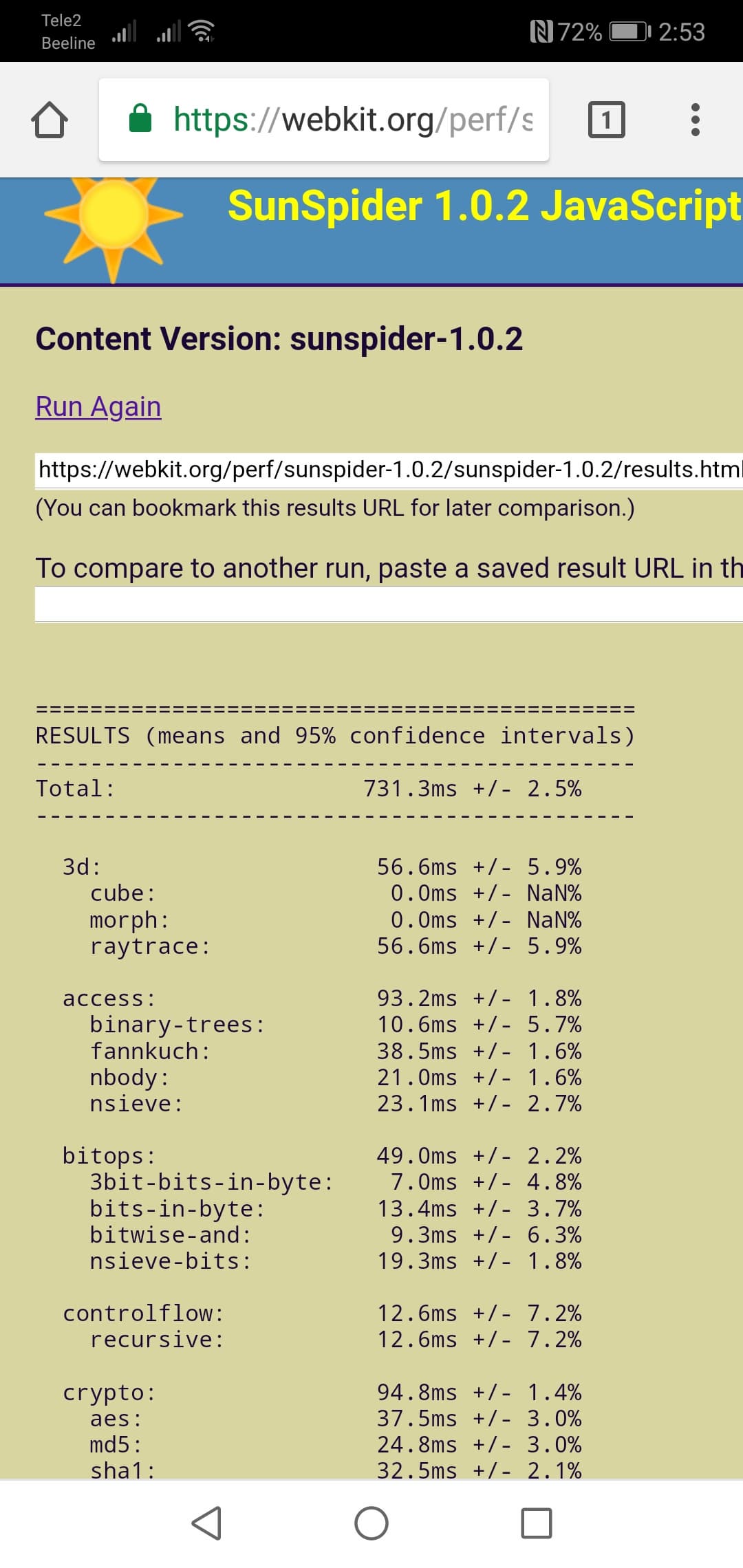 | SunSpider (мс, меньше — лучше) | 731 | 1755 | 1491 | 859 |
