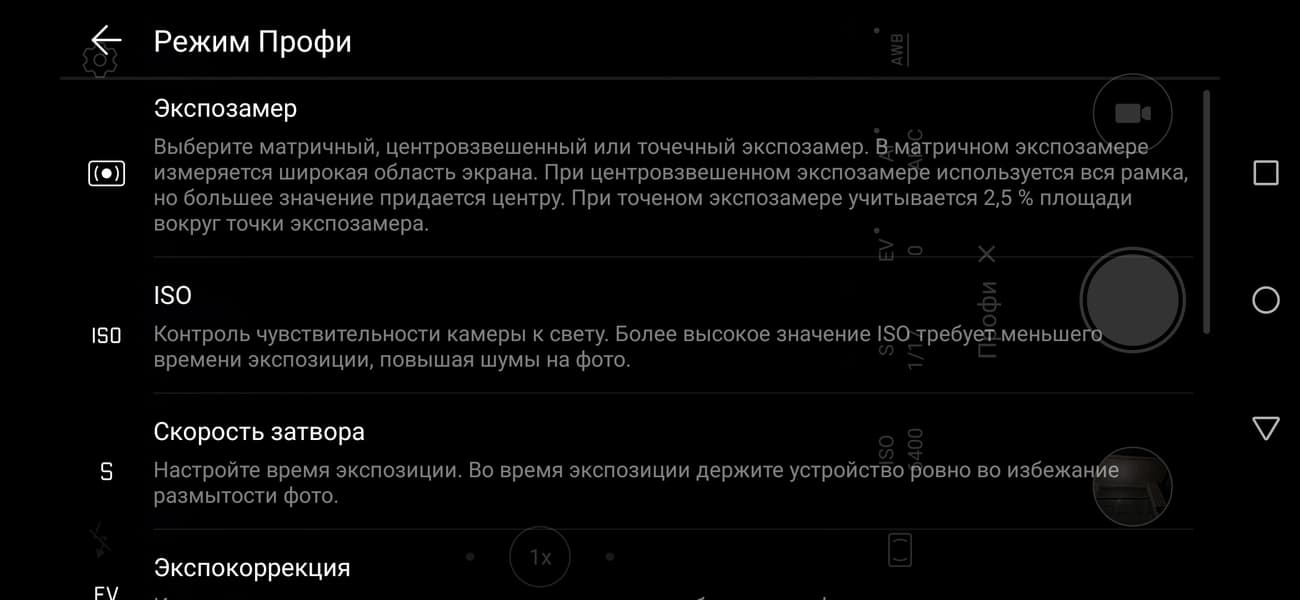 Ну а завершим этот материал рассказом о шикарном режиме «Профи». Но пусть вас его название не пугает – профессиональным фотографом для его использования быть вовсе не обязательно. Просто здесь большая часть автоматических алгоритмов отключается, а вы получаете прямой контроль за всеми ключевыми настройками съемки.
