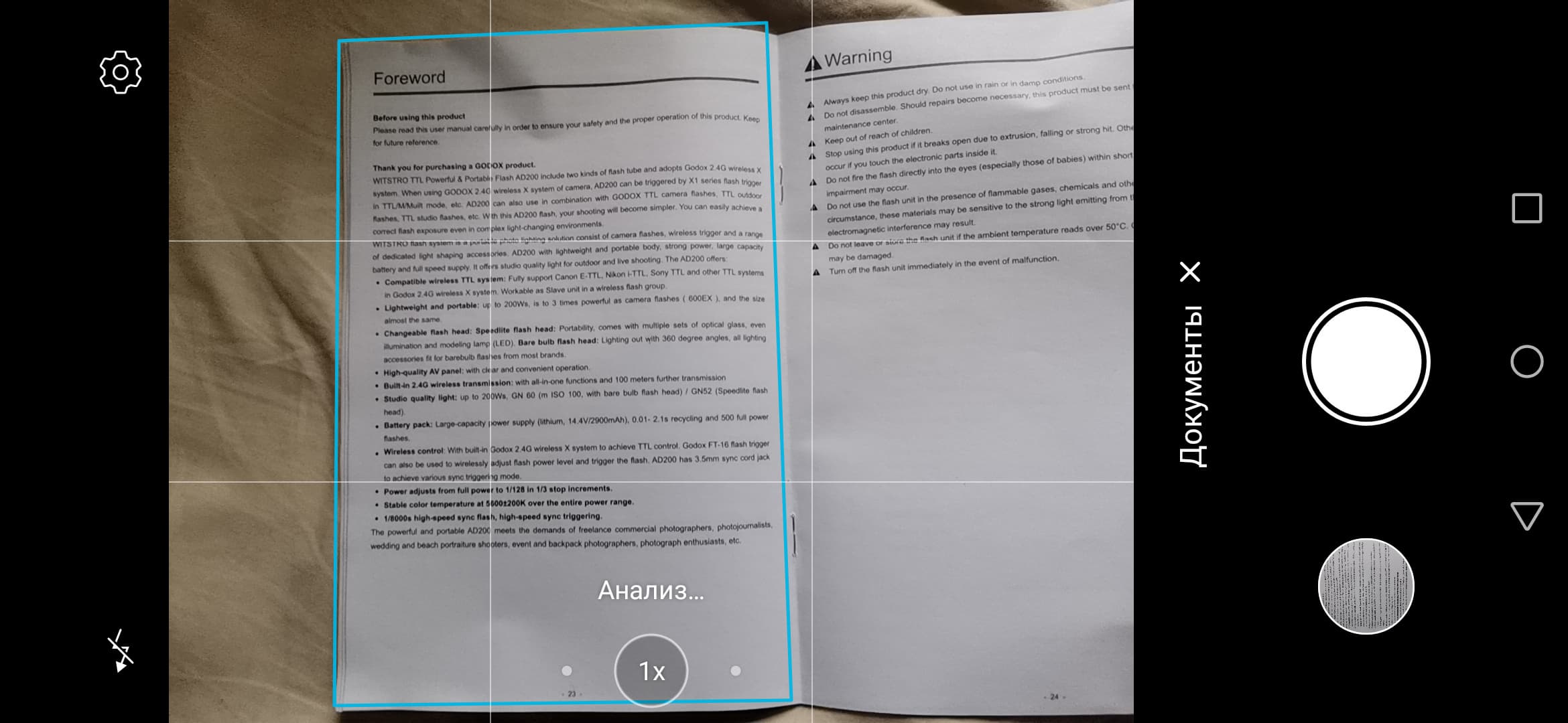 Режим «Документы» вполне ожидаемо предназначен для съемки текстов и, как ни странно, документов. Часто ведь нас просят что-то распечатать, подписать, отсканировать, а затем отправить, и вот это как раз тот случай: только к сканеру бежать не надо, поскольку есть Honor 20 c его отличной камерой. Главная «фишка» здесь в том, что телефон самостоятельно определяет границы фотографируемой страницы и автоматически отрезает все лишнее вокруг. Очень удобно – не нужно лезть ни в какой «Фотошоп».