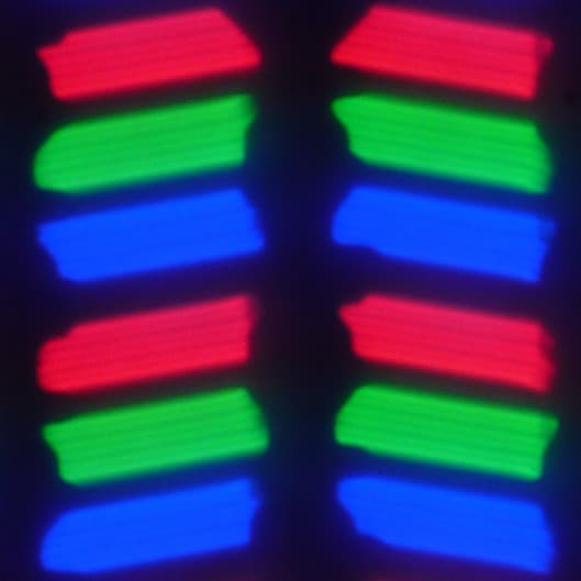 В данном смартфоне используется матрица типа IPS. Микрофотографии демонстрируют типичную для IPS структуру субпикселей: