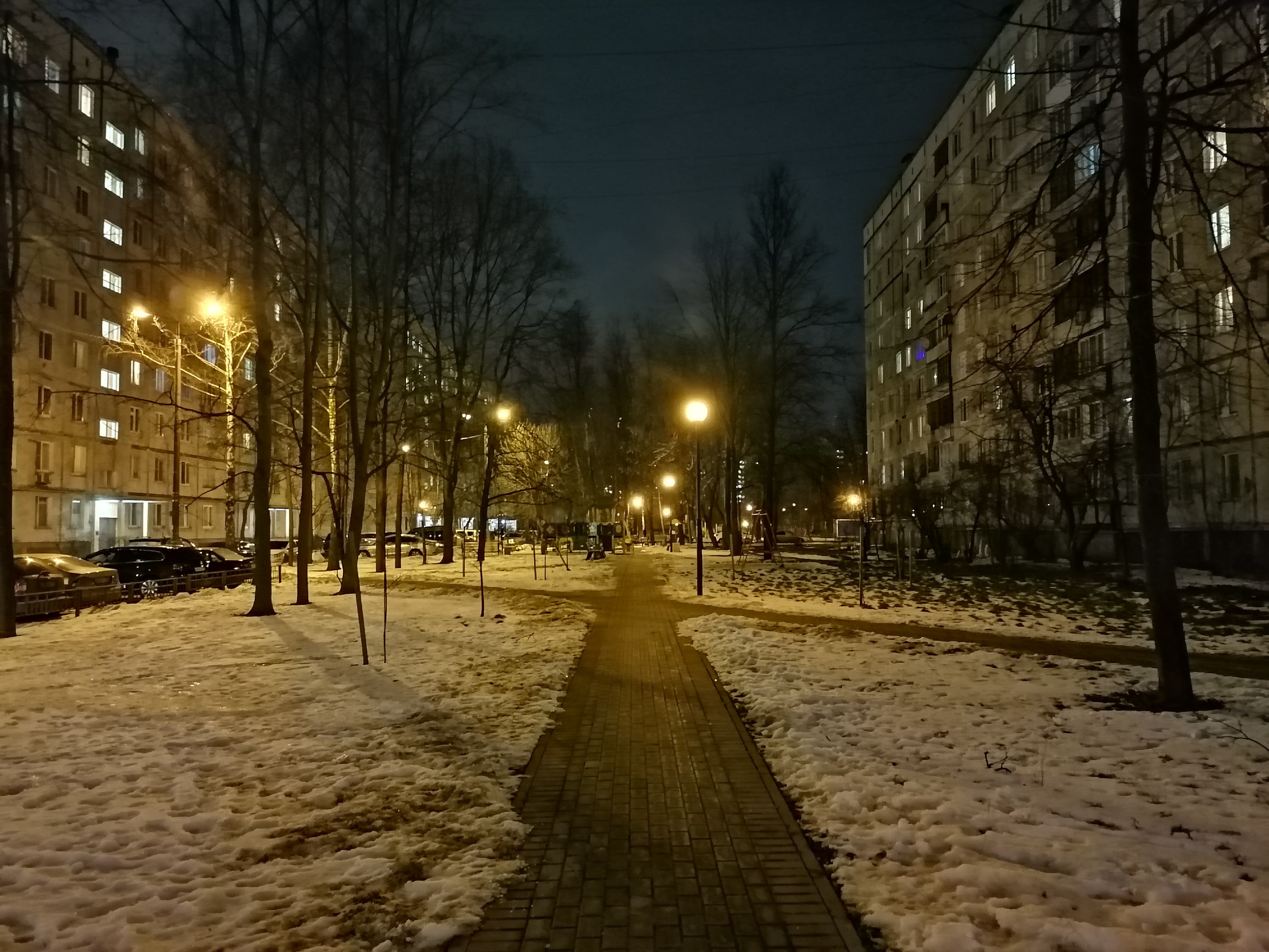 Ночные снимки в обычном режиме слабые, тут смартфону похвастать нечем, но есть ночной режим (съёмка одного кадра при этом занимает около 5 секунд).