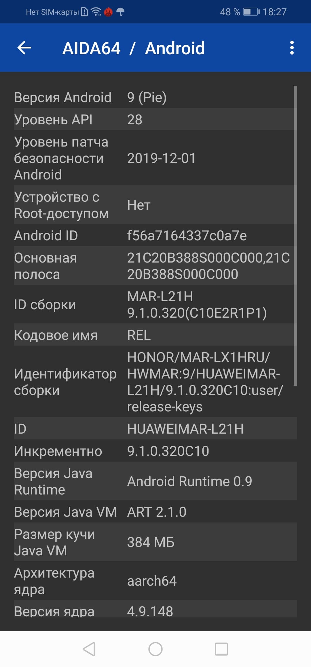 Основные характеристики Honor 20 Lite (модель MAR-LX1H)