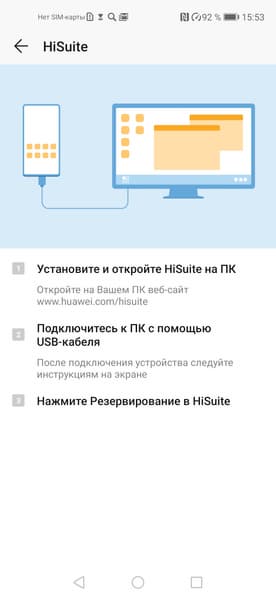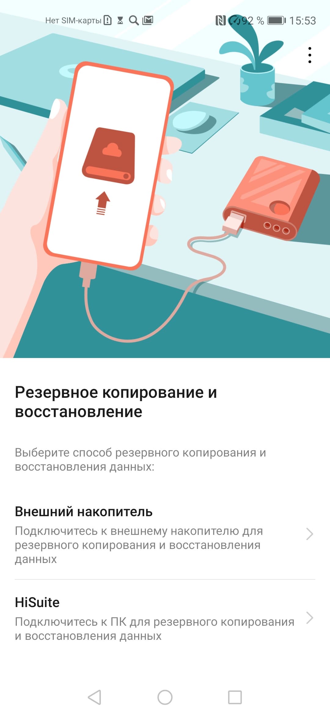 В смартфонах Honor это делается через меню настроек — пункт «Резервное копирование». Данные сбрасываются на карту памяти, флешку или на компьютер с приложением HiSuite.