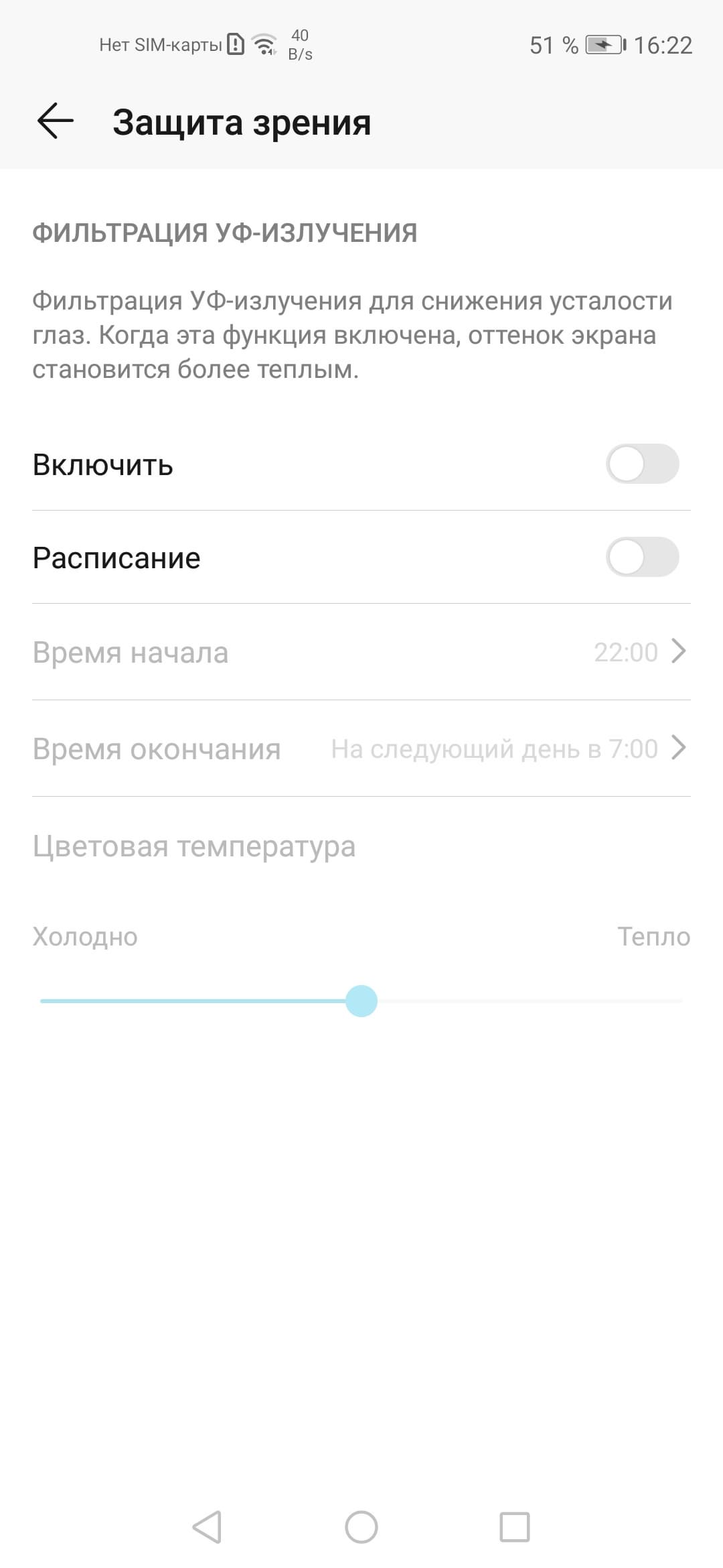 Присутствует модная настройка, позволяющая снизить интенсивность синей компоненты.